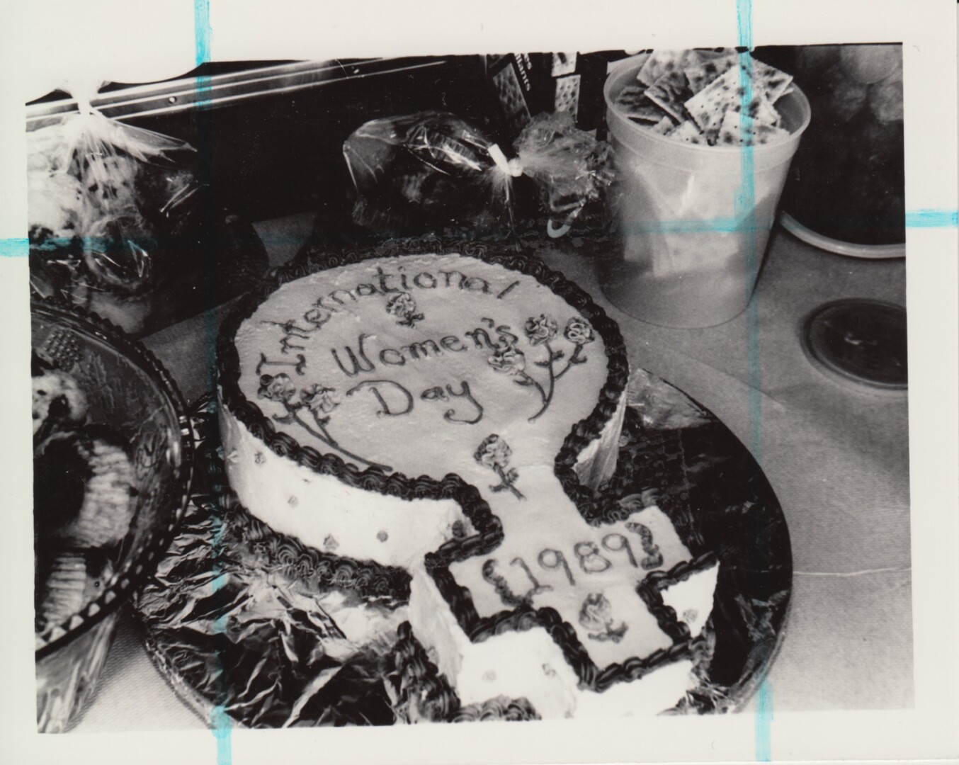 54 – La Journée internationale des femmes a été fêtée avec ce joli gâteau en 1989. Où aurait été prise cette photo? Qui a confectionné le gâteau?
