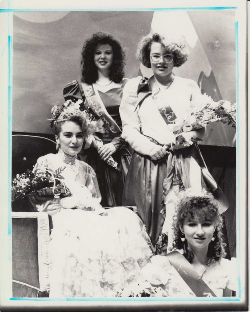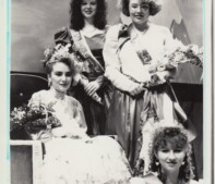 57 – C’est Paula Robia, assise à gauche dans la photo, qui est couronnée la Reine du Carnaval lors du Carnaval d’hiver de 1991, à Cap-Saint-Georges. Qui sont les trois autres femmes sur cette photo?